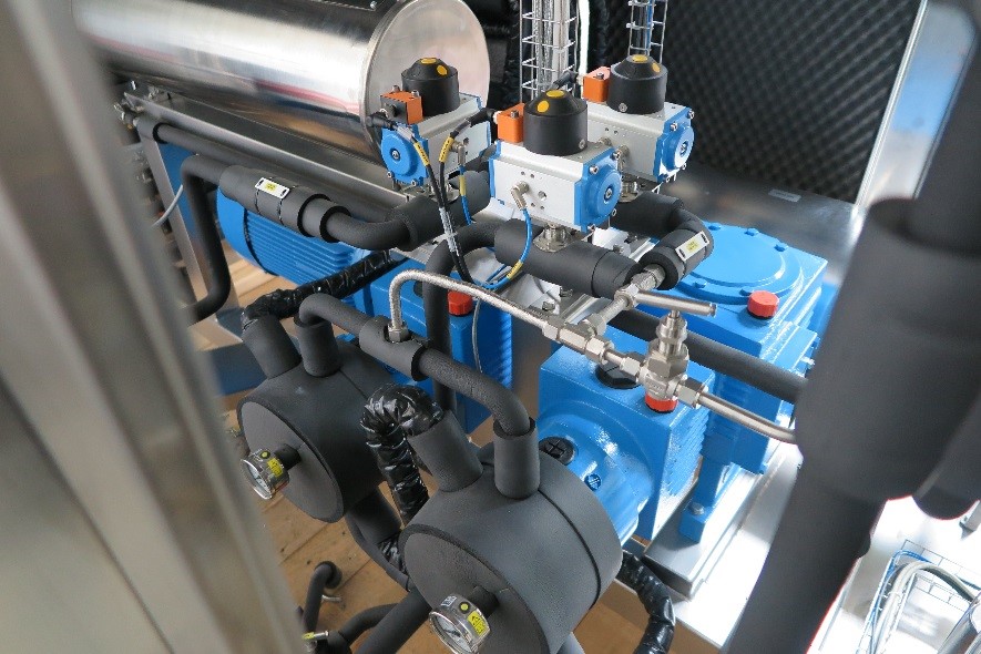 V naše sisteme vgrajujemo membranske črpalke svetovno najbolj priznanega proizvajalca, Lewa Nikkiso. Pri omenjenih črpalkah je zelo pomemben podatek, da zagotavljajo popolno inertnost ob stiku z različnimi vzorci, saj so materiali, ki prihajajo v kontakt, iz nerjavnega jekla ter teflona (PTFE). Zaradi svoje velike zanesljivosti in robustnosti tovrstne črpalke ponujajo eno izmed najfleksibilnejših in najenostavnejših črpalnih rešitev, kar pomeni, da so izvrstno orodje za rokovanje z zelo velikim razponom tekočin. Zaradi robustne konstrukcije (teža črpalke kapacitete 200 kg/h znaša 700 kg) se najpogosteje uporabljajo v petrokemiji ter na naftnih ploščadih, kjer so pogosto prisotne ekstremne delovne razmere zaradi kontakta z visokokorozivnimi snovmi ter zaradi nenehne izpostavljenosti slani atmosferi. Prav izjemne lastnosti teh črpalk so bile odločilne pri naši izbiri, saj zagotavljajo zanesljivost delovanja ob nizkih stroških vzdrževanja pri črpanju superkritičnih tekočin.